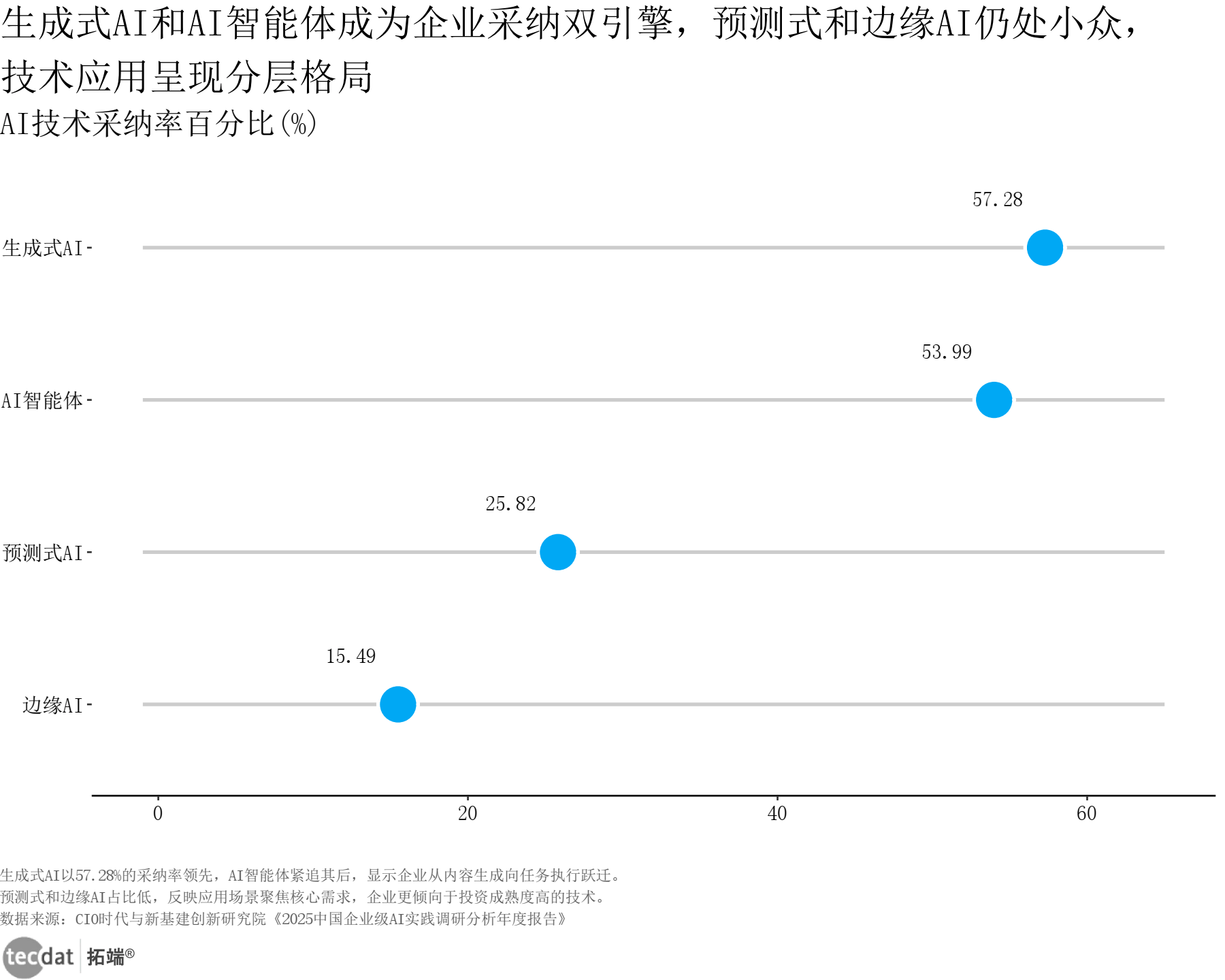 AI就能快速兑现价值。二者构成较着矛盾。且分歧场景呈现出差同化的落地特征。避免“盲目跟进线个月内可落地用例2025年AI财产的焦点特征,此中生成式AI占比将达35%。