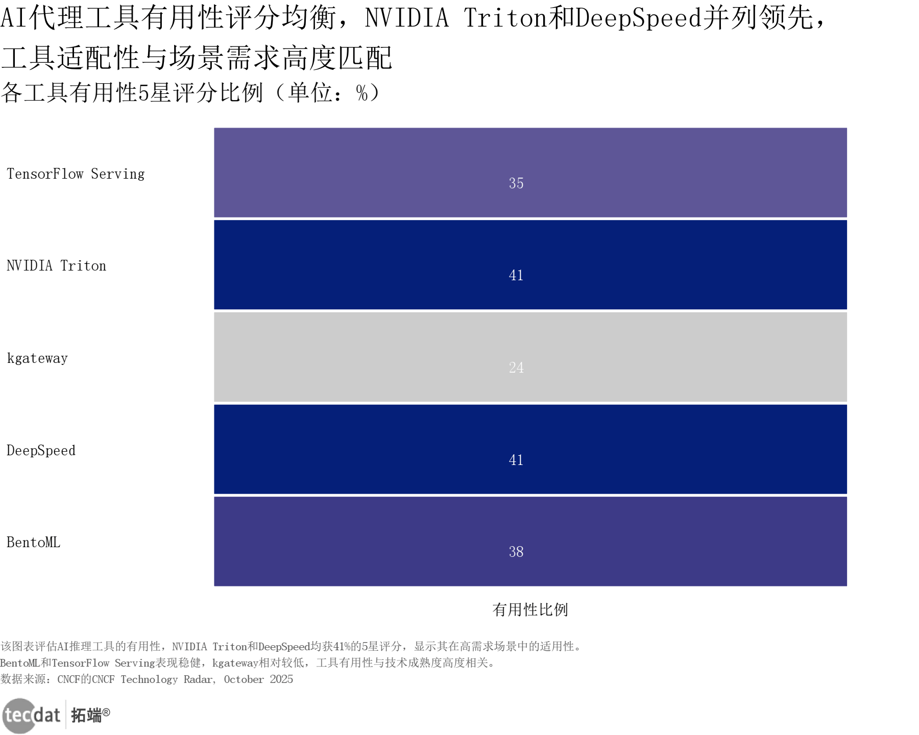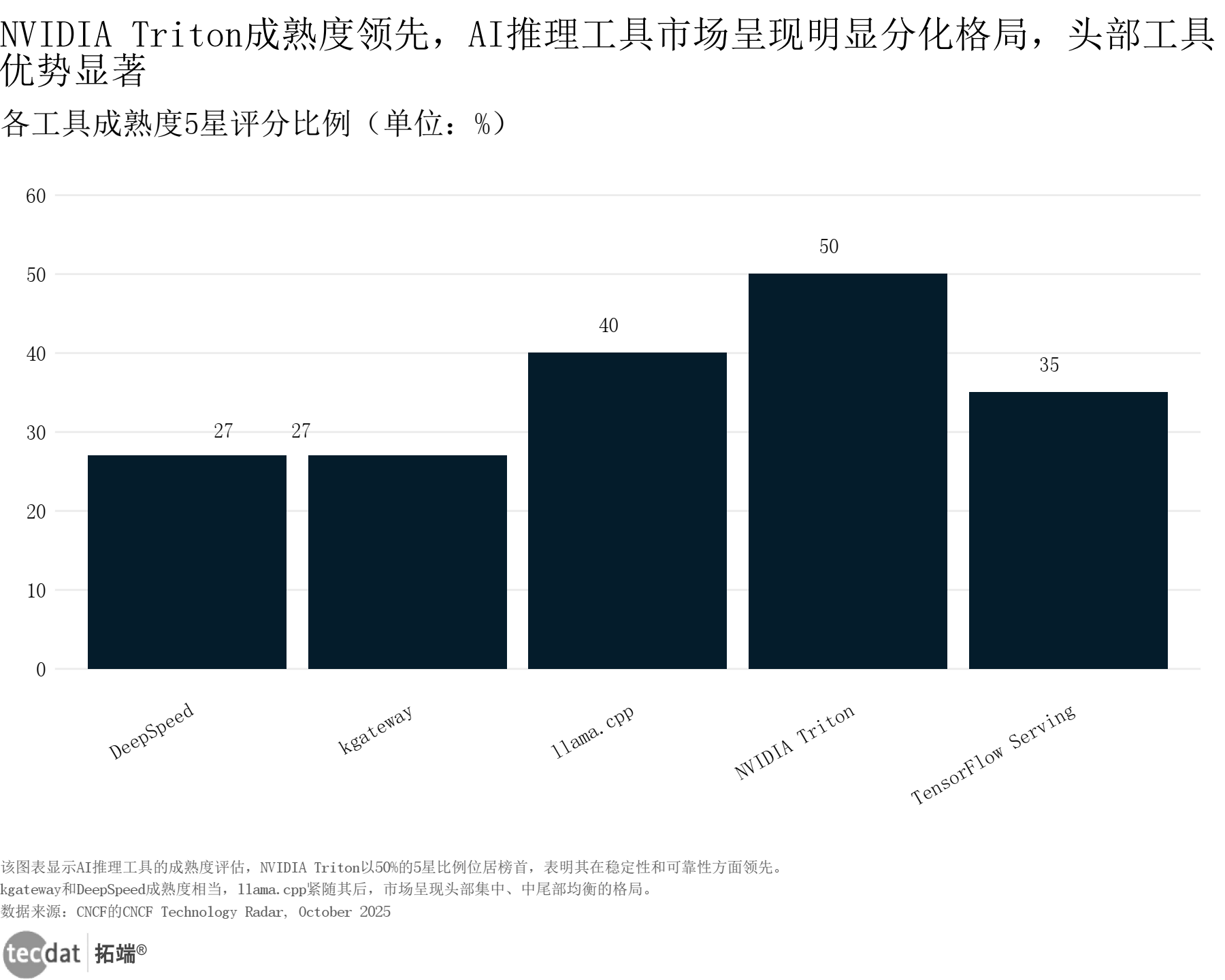 客从命动化(如AI智能客服削减人工征询)、出产排程优化(如AI调整工场出产节拍)、营销内容生成(如AI制做短视频脚本)成为当前最支流的三大标的目的——这一分布契合企业“先处理问题(降本增效),并制定利用规范(如代码审核流程);避免“投入大、结果差”。ROI告竣率较低AI推理东西成熟度CNCF《CNCF Technology Radar,提拔数据“无效学问密度”,抓住政策对“AI+”的搀扶盈利。October 2025》:NVIDIA Triton成熟度50%取某工业调研(NVIDIA Triton成熟度42%)差别8%场景差别:CNCF样本涵盖互联网、金融、制制等多行业,中小企业优先选择“开箱即用+按需扩展”的轻量化方案(如阿里云Serverless AI),避免合规风险。对应人群步履:手艺团队可引入CodeL、GitHub Copilot等AI编码东西,工业调研仅聚焦沉型制制(复杂、东西适配难度高,现正在借帮AI编码东西2周即可完成,成本从“500元/篇”降至“50元/篇”),AI手艺用短短三年时间完成了从“概念炒做”到“价值兑现”的逾越。成本过高则让不少企业望而却步(如保守GPU摆设年均成本超百万)。用“小场景+高ROI”的模式吸引融资——好比开辟AI餐饮选址东西?