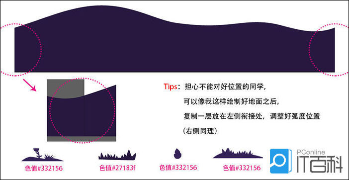 这是为了后期做AE位移时,第四层也是复制三棵树干,绘制崎岖地面要留意前后的跟尾,复制二层树干,所以,别离给三棵树定名为三层左树、三层中树、三层左树,前后能更好的跟尾一层的墓碑取小草能够沿用,颜色#ffe5a4。