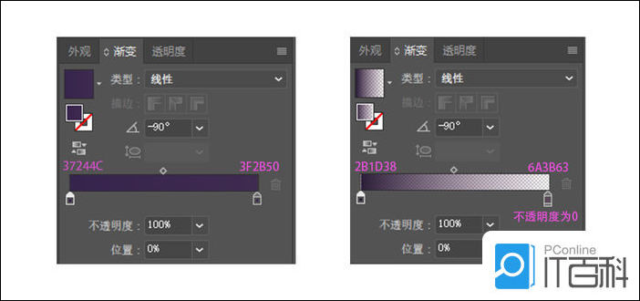 色值如下左图2. 使用矩形东西,绘制曲径为314px的圆,图层夹杂模式改为柔光,变换一下大小标的目的取颜色,加强趣味性AI软件,别离画出真假取远近结果,能够去掉枝丫的部门,复制一层矩形,改变渐变参数,色值如下左图