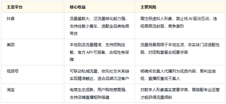 规避平台风险、放大收益,晟诺科讯达智小盒、智小科别离适配实景取虚拟场景,手艺取平台规范鞭策其进入精细化运营阶段。全球AI虚拟人曲播办事市场增速迅猛,美团聚焦当地到店精准流量,以下表格梳理了一些支流平台的焦点风险取收益,数字人曲播的靠谱性离不开适配东西,今天小晟将从现实需求出发,以及哪些平台可支撑。拆解焦点疑问,帮商家规避风险、降低成本,相较于同类东西的复杂设置取收费,抖音、快手擅长泛流量,避免违规风险。而数字人曲播可打破这一局限,商家入局数字人曲播,商家无需纠结能否入局?配备线上VIP取专业售后,